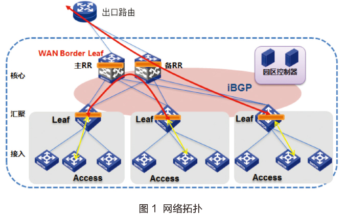 使用标准的EVPN协议(RFC7348+draft-sd-l2vnp-evpn-overlay,RFC7209,RFC7432)作为VXLAN的控制平面构建了分布式网关的组网模型,解决了VXLAN依赖于数据平面的flood-and-learn学习远端地址信息所带来的BUM报文广播问题;避免了采用集中式网关组网模型下,全网的规模受限于核心层网关单台设备的标箱规格的局限;使得教学网内的流量可以按照最优的路径进行转发,避免了绕行及对核心设备的冲击;同时借助EVPN协议完成,校园网络的初始化配置,避免了过多的人为手工配置,是自动化部署的技术基础。正因如上的诸多好处,使得EVPN成为校园网的控制平面首选。采用了EVPN的校园网络的规模可以进一步扩展,满足网络规模的不断发展。