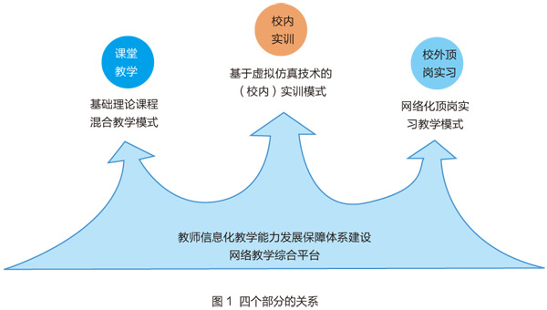 高职院校人才培养过程中主要包含课堂教学、校内实训、校外顶岗实习三方面教学内容。针对原有教学模式效率低、形式简单、不能满足学生的个性化学习需求等问题,青岛酒店管理职业技术学院提出了清晰的信息化教学改革思路: