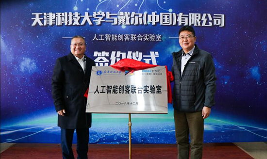 为推动创新创业教育领域的技术探索与实践活动的开展,戴尔(中国)有限公司(以下简称“戴尔”)与天津科技大学于2018年12月4日就共建“人工智能创客联合实验室”(以下简称“联合实验室”)举行签约及揭牌仪式。戴尔易安信全球副总裁、大中华区成熟区域市场总经理袁洪伟,戴尔易安信大中华区教育行业高级拓展经理郑狄,天津科技大学校党委副书记张爱华,天津科技大学计算机科学与信息工程学院党委书记张国顺等领导莅临现场见证仪式。