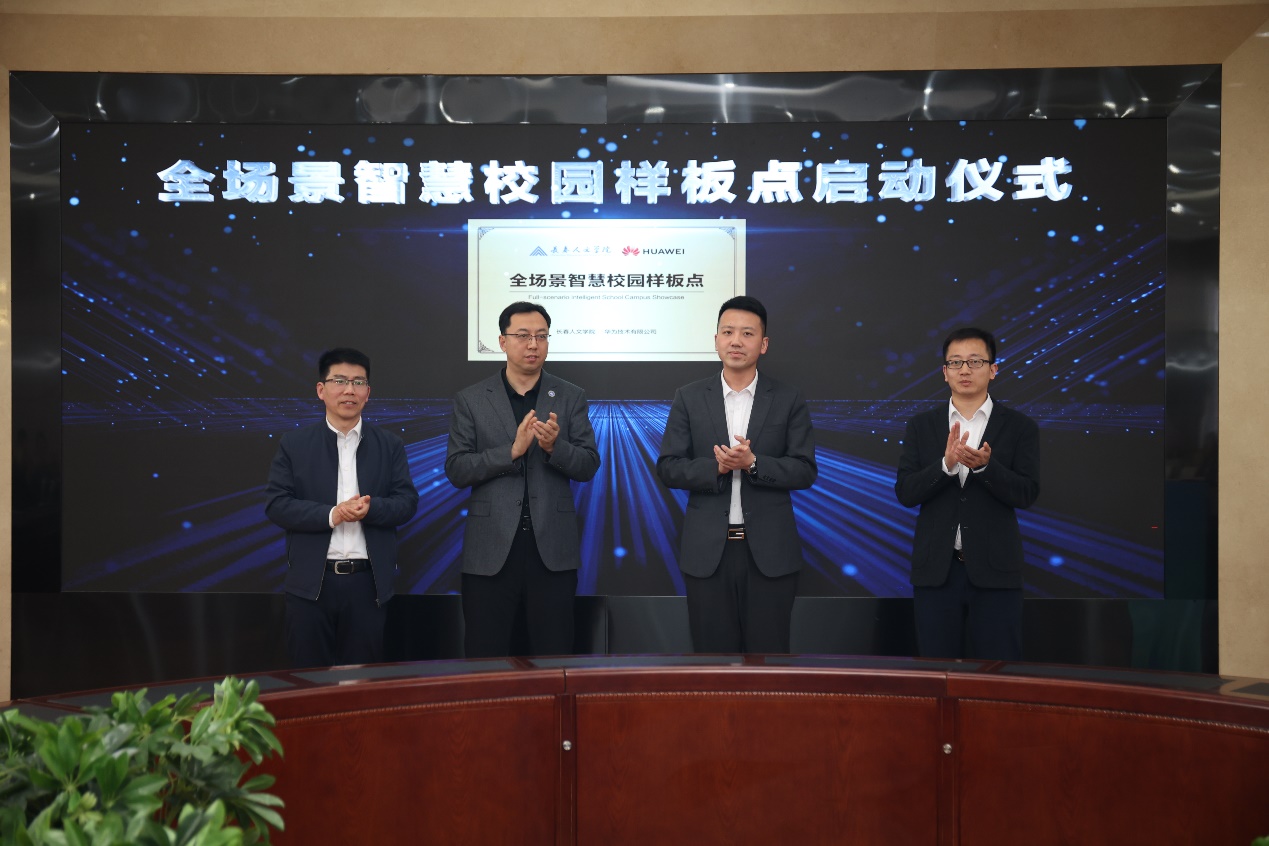 在授牌仪式环节,教育厅、长春人文学院及华为公司分别为样板点进行了授牌。这标志着长春人文学院全场景智慧校园样板点的正式落成,也为学院未来的智慧校园建设奠定了坚实的基础。