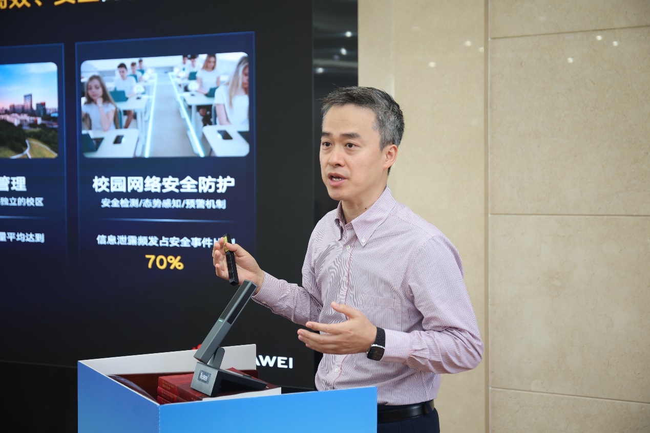 长春人文学院副校长刘涛在致辞中提到,近年来,我们与华为公司以数字化技术全方位赋能校园场景,构建了覆盖全校的智慧化体系,打造了吉林省高校数字化转型的标杆案例。在合作中,华为以技术为笔,与我校共同绘制智慧校园全景图。以“技术+场景”的创新模式,为高校提供了从顶层设计到落地实施的全周期方案,真正实现了“数字为教育赋能”。未来,我们将继续深化与华为的合作,拓展数字化新技术应用,打造“全联接、全感知、全智能”的教育新生态。