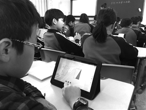 何锋近日上的是数学课,Pad用得很溜,他班上的学生用得也很不错。