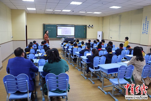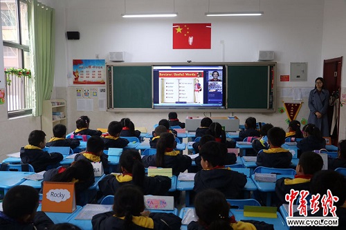 图为合肥市建平实验小学“沪皖在线课堂”英语课现场