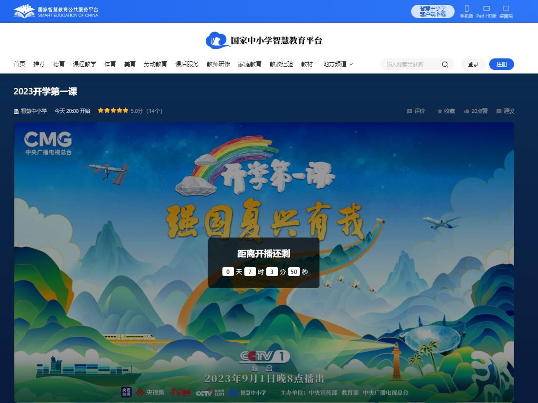 开学季到来,中宣部、教育部、中央广播电视总台联合制作2023年《开学第一课》专题电视节目也将如期和大家相见。今年的节目以“强国复兴有我”为主题,将于9月1日晚8点在中央广播电视总台央视综合频道(CCTV-1)播出,并在央视新闻、央视频、学习强国、国家中小学智慧教育等新媒体平台同步播出(