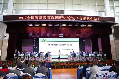 日前,以“人工智能时代智慧教育的发展”为主题的全国智慧教育系列观摩研讨活动在合肥八中召开,活动旨在探索新型智慧教育发展模式,探讨信息技术与教育教学的深度融合,全国各地教育主管部门领导、教育信息化专家、中小学校长以及教师代表近2000人参会,中央电化教育馆副馆长蔡耘,中国电化教育杂志社社长许林,合肥市教育局副局长王勇等出席会议。