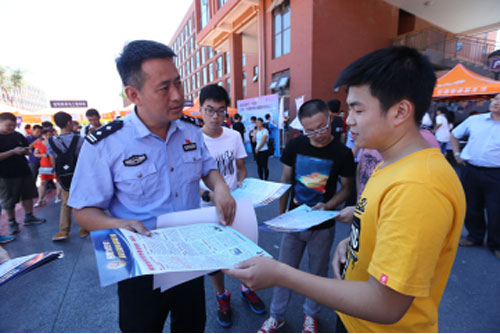 民警向南开大学新生科普防诈骗知识