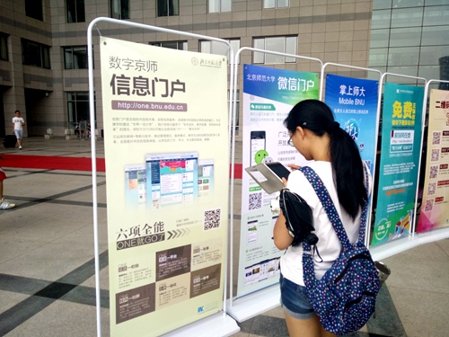 本次北师大迎新也赶上了“互联网+”潮流。新生被录取后,入学前就能激活专属账号,新生可以通过微信门户激活数字京师信息门户、校园网账号、师大邮箱等等,获取学校各类信息和入学报到的各项提示,在第一时间就能开启新生大学数字体验。在迎新当天,新生可以利用微信进行网络互动:在主楼设置24平米大屏幕展示留言墙和报到照片墙,新生完成刷二维码报到后其个人照片就会在大屏幕上显示,全校师生可以通过微信门户寄语新生,新生也能发表自己心情,内容通过弹幕的形式在此区域动态显示。16级新生孙同学说:“学校迎新互联网化,真是既方便又潮流!”