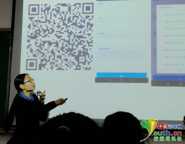 卢常芳老师正为同学说明二维码选课方式。中国青年网通讯员 江琳娟 摄