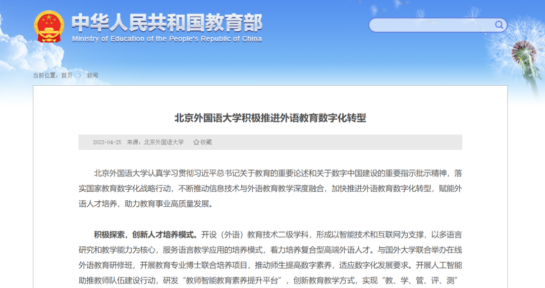 北京外国语大学认真学习贯彻习近平总书记关于教育的重要论述和关于数字中国建设的重要指示批示精神,落实国家教育数字化战略行动,不断推动信息技术与外语教育教学深度融合,加快推进外语教育数字化转型,赋能外语人才培养,助力教育事业高质量发展。