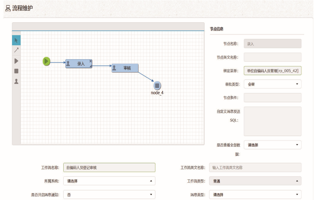 本平台的主要工作流有单位自编码人员录入审核和单位自编码人员信息变更审核。以单位自编码人员审核为例,其开发步骤如下: