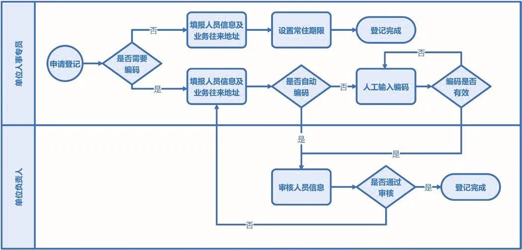 高校常住人员中的学生和教职工从学生注册系统、人事系统等定时同步而来。因此,平台的人员登记流程主要包含社区居民登记和业务往来人员登记。
