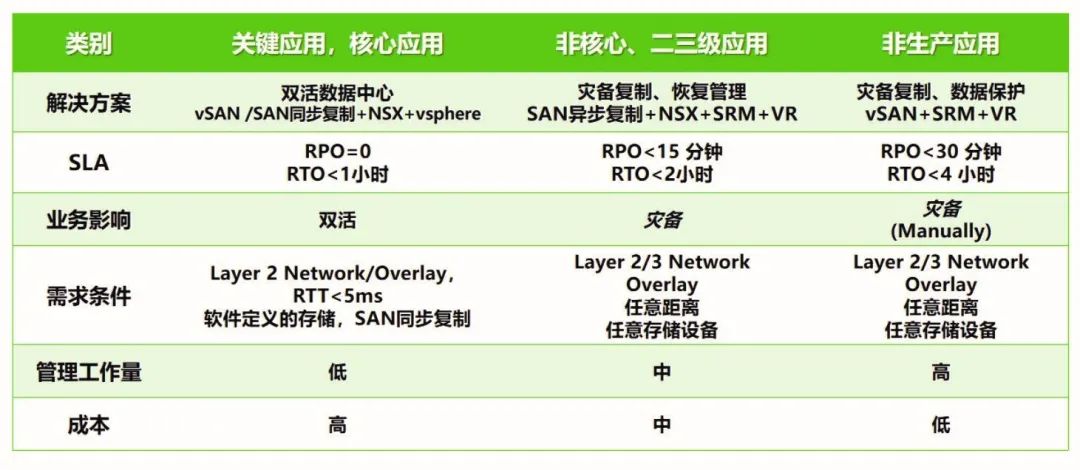 表1 数据中心:基于业务需求规划的容灾解决方案