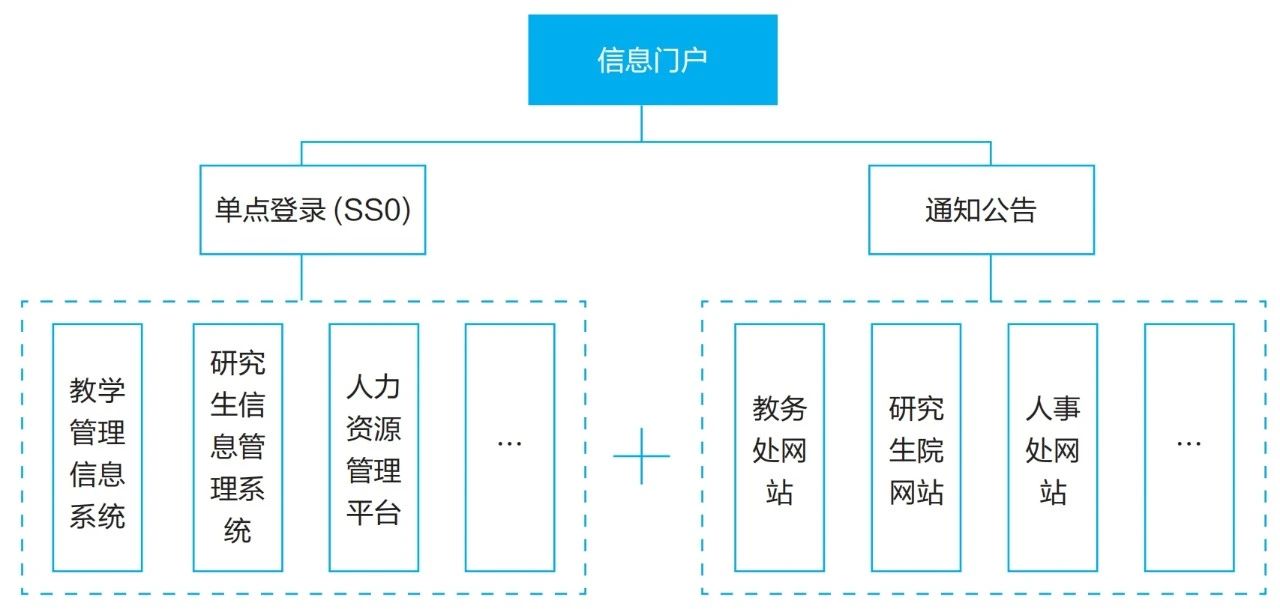 近些年来,随着大数据、云计算、物联网等技术的不断发展,高校信息化建设已由数字化校园建设逐步转入智慧校园建设。在数字化校园建设时期,系统建设主要以管理部门为中心,独自建设,各自管理,后逐渐形成了“信息孤岛”。而进入智慧校园建设时期后,建设理念逐渐转向以为师生服务为中心,致力于打破系统间的壁垒,实现信息互联互通,开启“一站式服务”现代化建设,同时各高校加快了服务、数据、系统等深度融合与集成的进程,由此,融合门户应运而生。