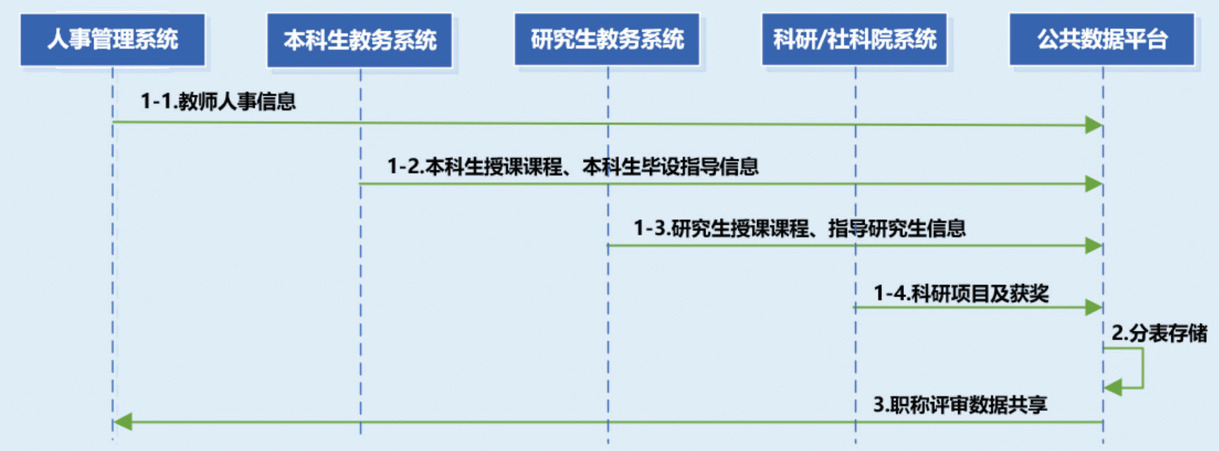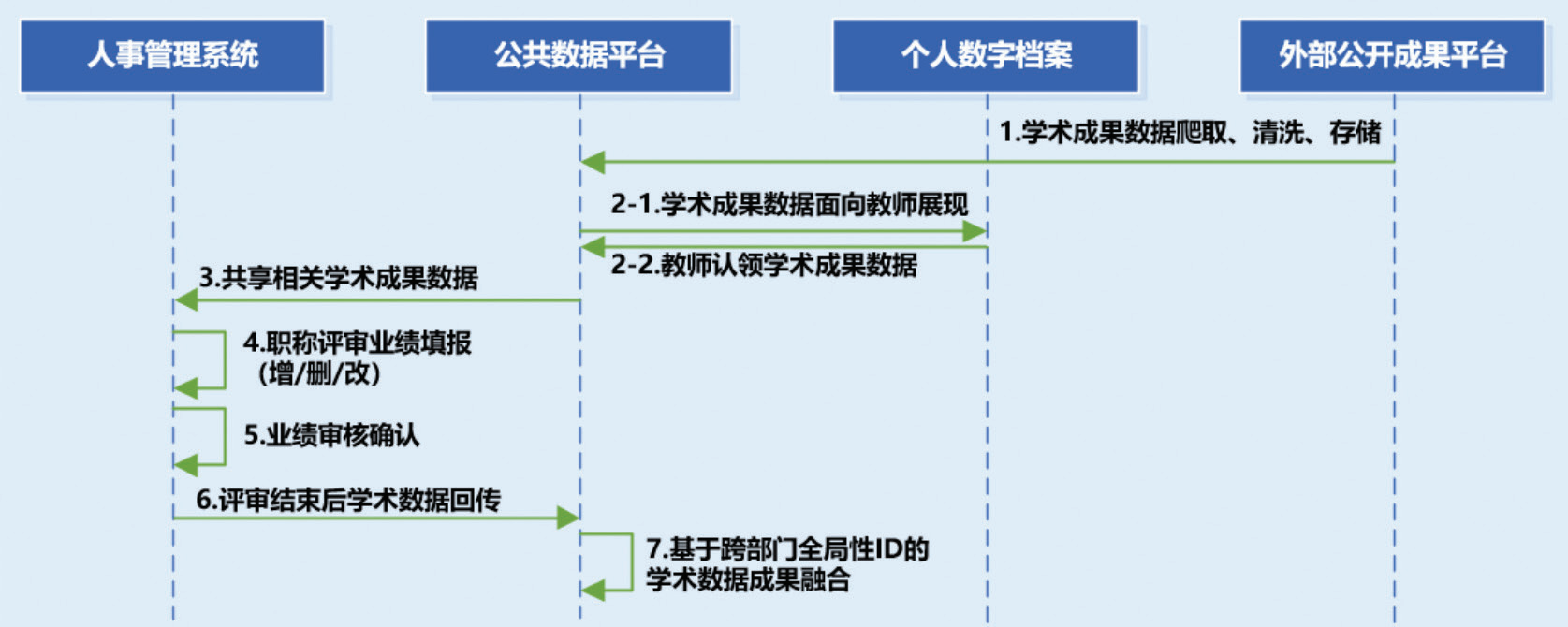 学校健全数据共享复用机制,通过跨部门的数据多元协同、整合和共享,消除数据孤岛问题,使得教师在职称申报过程中跨年度、跨系统业绩信息的复用填充成为可能,并以业务开展与数据治理相辅相成的方式形成数据共享链路的良好闭环。