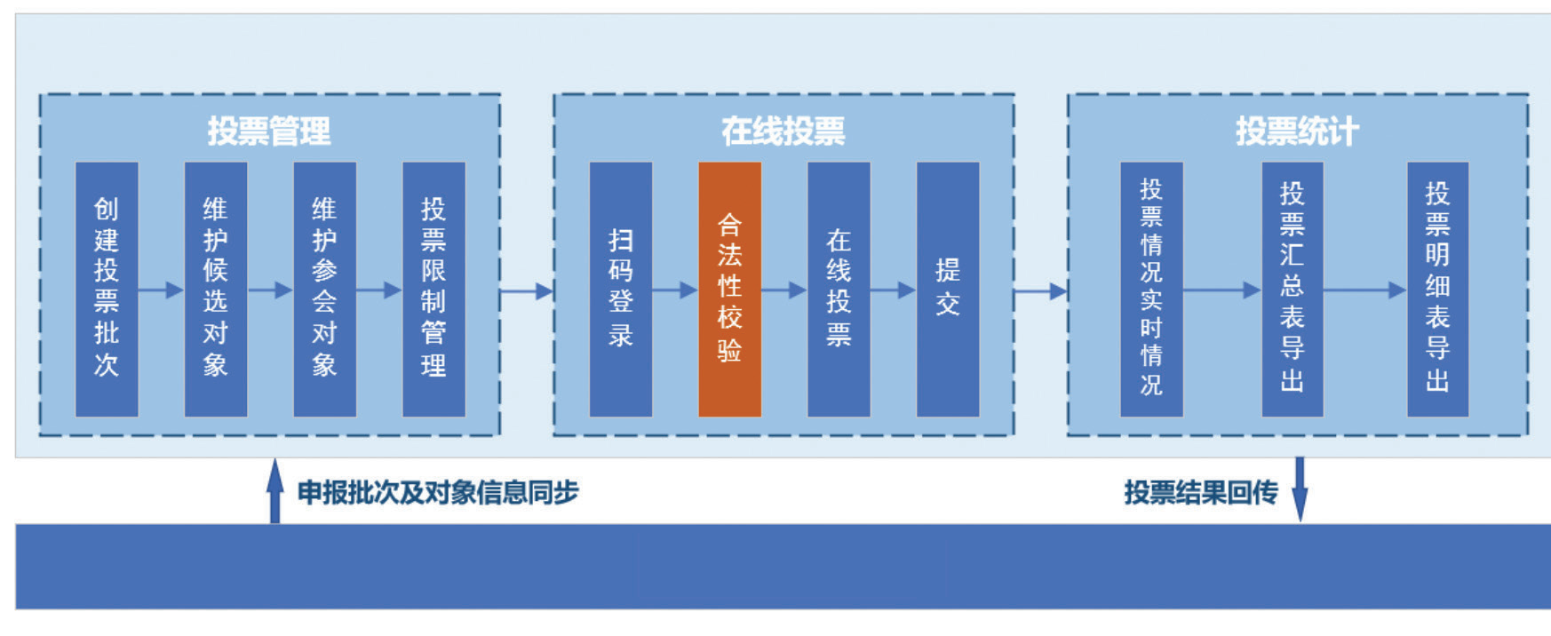 为进一步提供评审投票工作效率,人事管理系统在投票前置环节直接将审核环节具备的职称申报批次及申报对象信息进行跨系统对接,减少了创建投票批次与维护候选对象的工作;评审投票系统在投票结束后将统计结果直接回传至人事管理系统,直接形成了人事管理系统与评审投票系统间的业务协同。