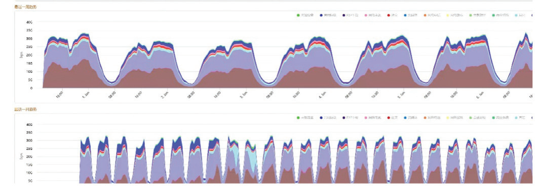 广东工业大学拥有庞大的师生规模,而学生上网习惯呈现潮汐现象,容易导致了突发流量的涌现,造成拥堵和丢包现象,为校园网络带来了极大的挑战。当前的40G核心层带宽已经无法满足校内师生上网的需求。流量高峰的出现使得校园网络不断接近极限,流量常常达到39G左右,这对整体校园网的可用性和性能提出了巨大挑战。在这种情况下,各种应用场景对带宽、延迟和稳定性的要求无法得到全面照顾,使得校园网面临更为复杂的挑战。