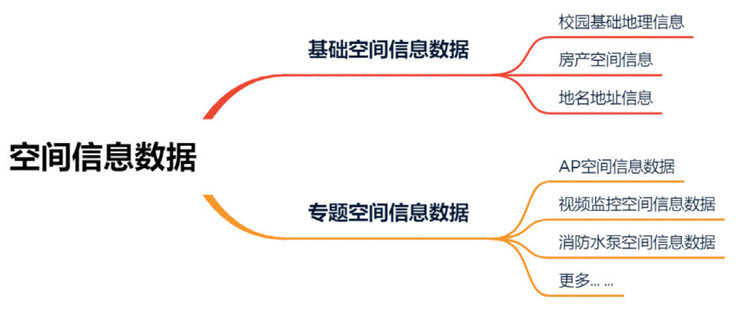 基础地理信息是指校园中最基础、普适、共享的地理信息,描述了地形、地物和境界的空间分布、关系和随时间变化等。主要源于实地采集,通过精确记录地理实体和现象的空间位置,形成数字地图或数据库产品。基础地理信息在定位、集成、检索、展示资源、环境、生态、社会和经济信息方面提供了重要作用,并为科学分析、模拟空间分布特征、运行状态、变化提供平台。