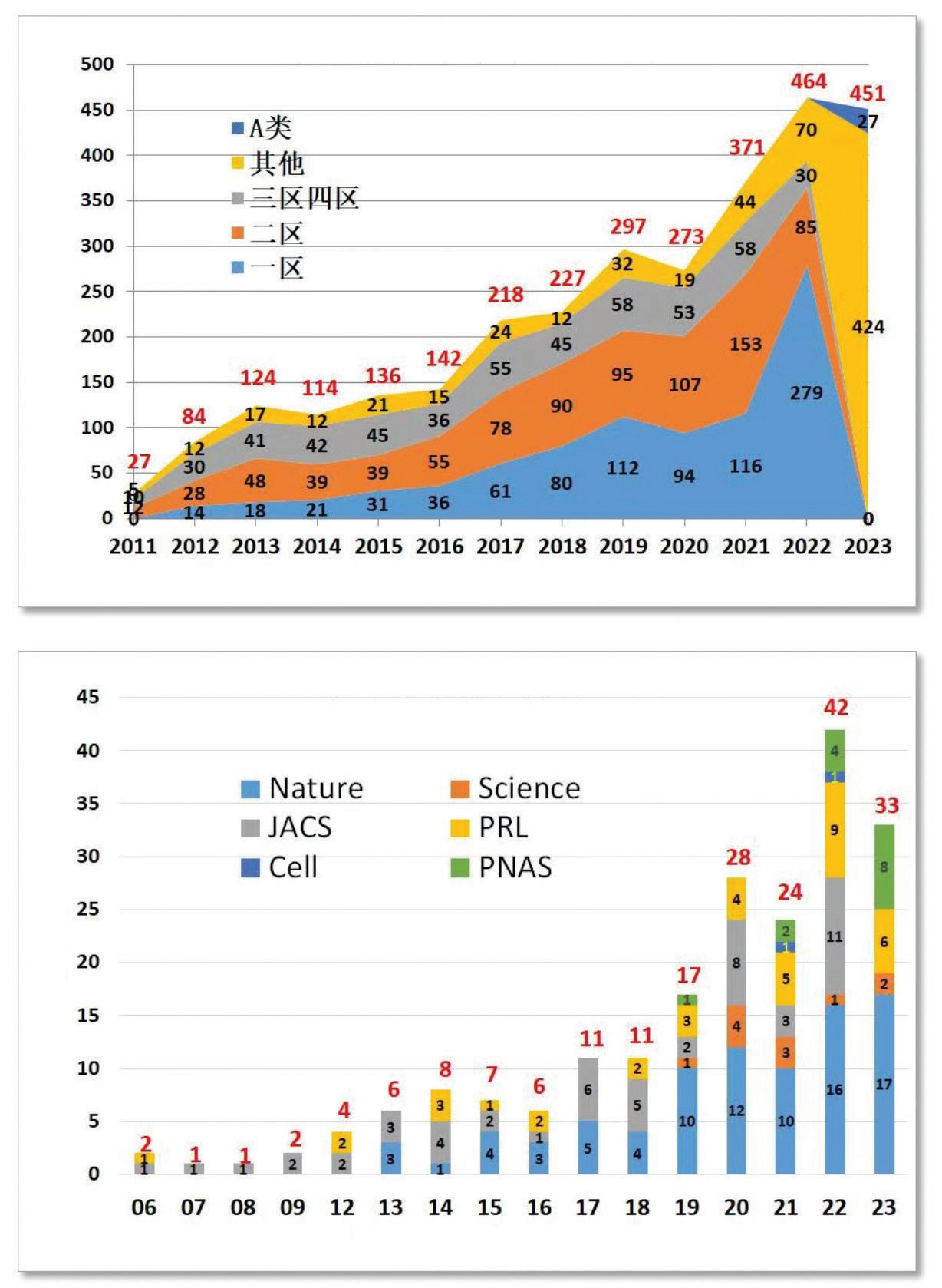 论文分区数量及顶级论文数量