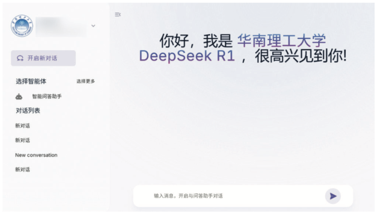2025年2月,随着DeepSeek-R1大模型的发布,华工为进一步培养师生AI思维和使用AI的能力,迅速行动,基于学校“成务”科学计算平台成功完成满血版DeepSeek-R1(671B)和32B蒸馏版大模型的本地化部署,走在全国高校前列。在校园网内,师生进行无限次的免费体验多版本的DeepSeek,彻底告别“服务器繁忙”的困扰,保障科研和学校内部数据的在校内安全运行。