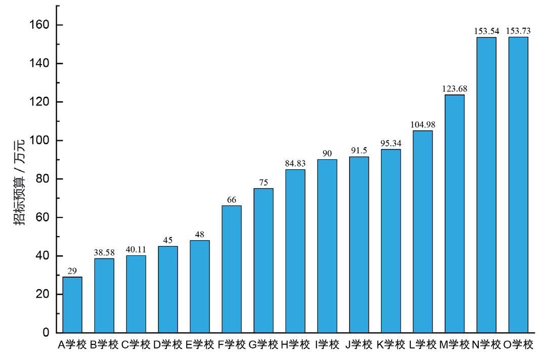 图1 部分高校称重选餐系统招标预算(数据来源:网上公开招标公告)