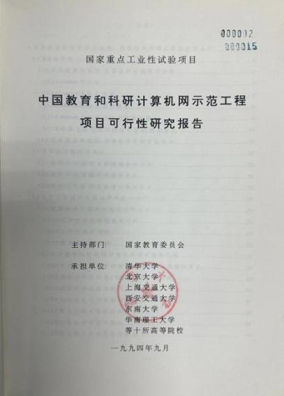 9月,在国家教委主持下,200多页的《中国教育和科研计算机网示范工程项目可行性研究报告》通过了由叶培大院士为首的专家委员会的论证,并由国家教委正式上报国家计委申请立项。这是我国高等教育与科研领域在网络建设方面描绘的最初蓝图。