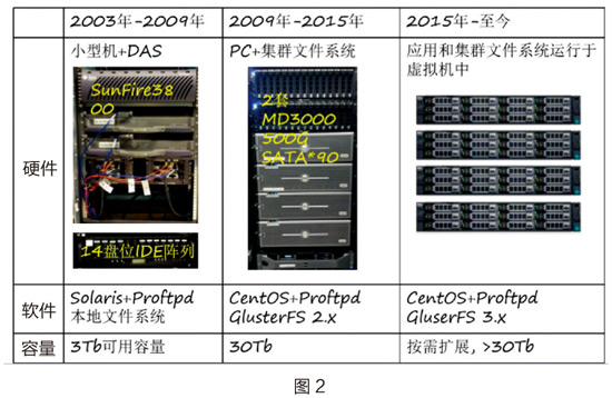 上海交大使用的个人云存储发展历程,如图1所示。下文将按照不同使用阶段的存储系统进行详细的介绍。