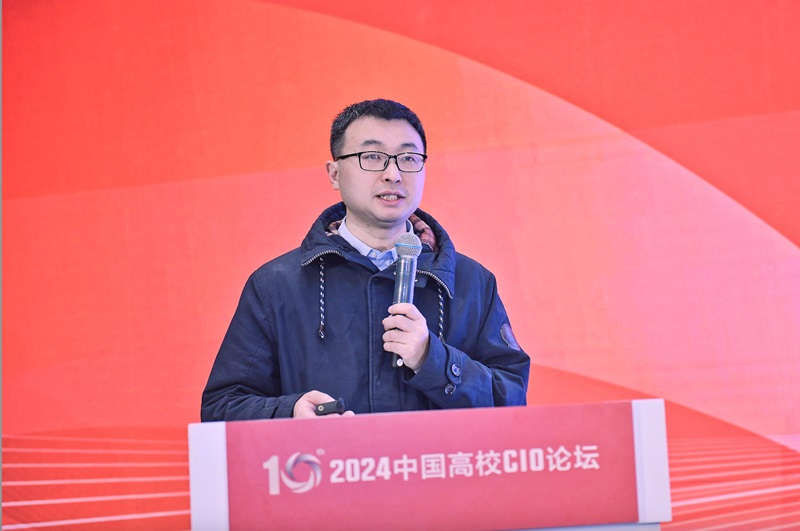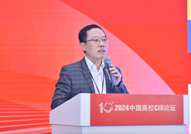 四川大学信息化建设与管理办公室主任段磊作了“AI相随:高校信息化建设的机遇与挑战”的主题报告。他表示,高校应充分发挥人工智能优势,积极推动人工智能和教育深度融合,促进教育变革创新。数据是信息化、数字化、数智化的基础,应重视激活教育数据要素潜能,释放教育数字化转型动力。人工智能时代,教育数字化转型存在诸多挑战,高校需要抓住机遇、迎接挑战,把握数字化、网络化、智能化等发展大势。