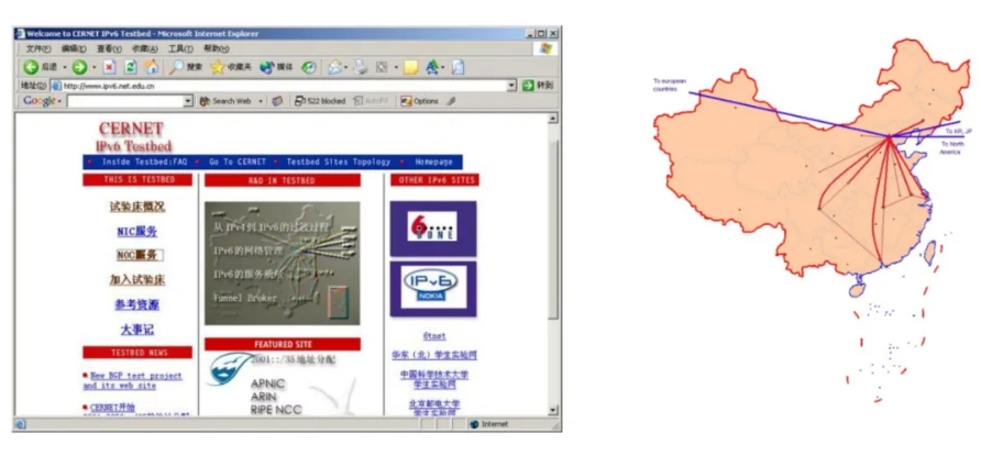 △ 全球8个最大的学术互联网开通全球 IPv6 下一代互联网服务(2004)