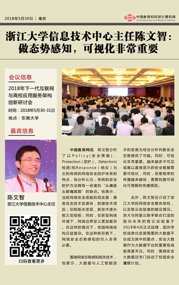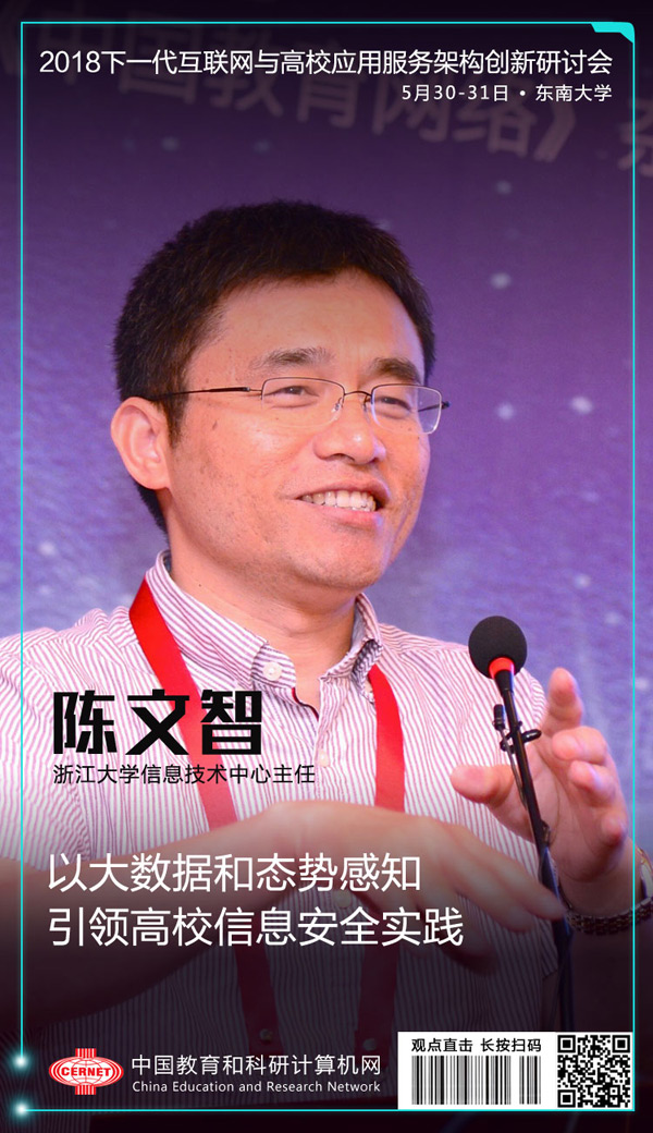 会上,浙江大学信息技术中心主任陈文智做了题为《做态势感知,可视化非常重要》的专家报告。