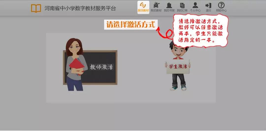点击顶部菜单“激活教材”,选择教师激活
