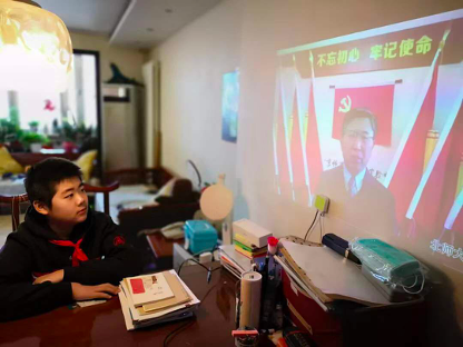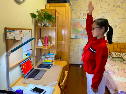 2月17日上午8时,北京师范大学附属实验中学全校师生面向屏幕上的五星红旗,唱国歌、敬礼,举行了一场特殊的开学典礼,正式拉开网上居家学习的序幕。