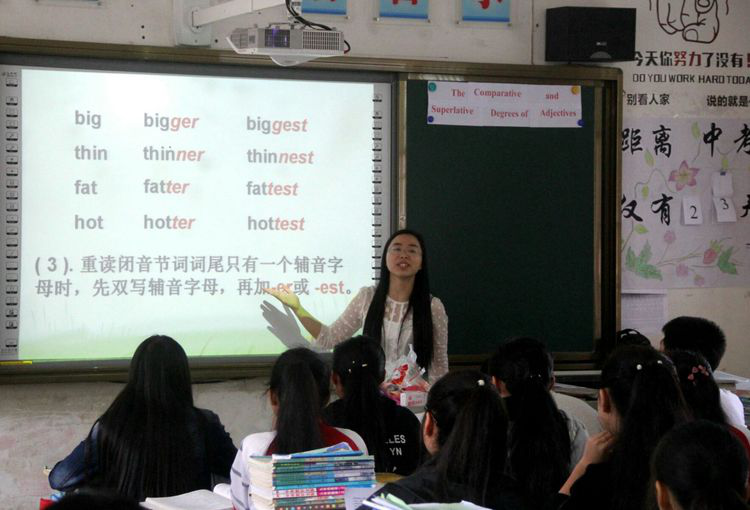 这节课由郴州市六中的英语教师谷老师主讲,谷老师首先利用大转盘游戏复习形容词的比较级,然后让学生自主归纳出过去式的构成规则,随后,又创设了一个模拟情境带领学生进行对话游戏。“太精彩了,老师讲得太有趣了,要是能天天上这样的课就好了。”下课后,李星恋恋不舍。