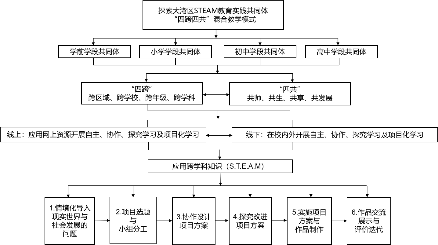 图1 大湾区STEAM教育实践共同体“四跨四共”混合教学模式