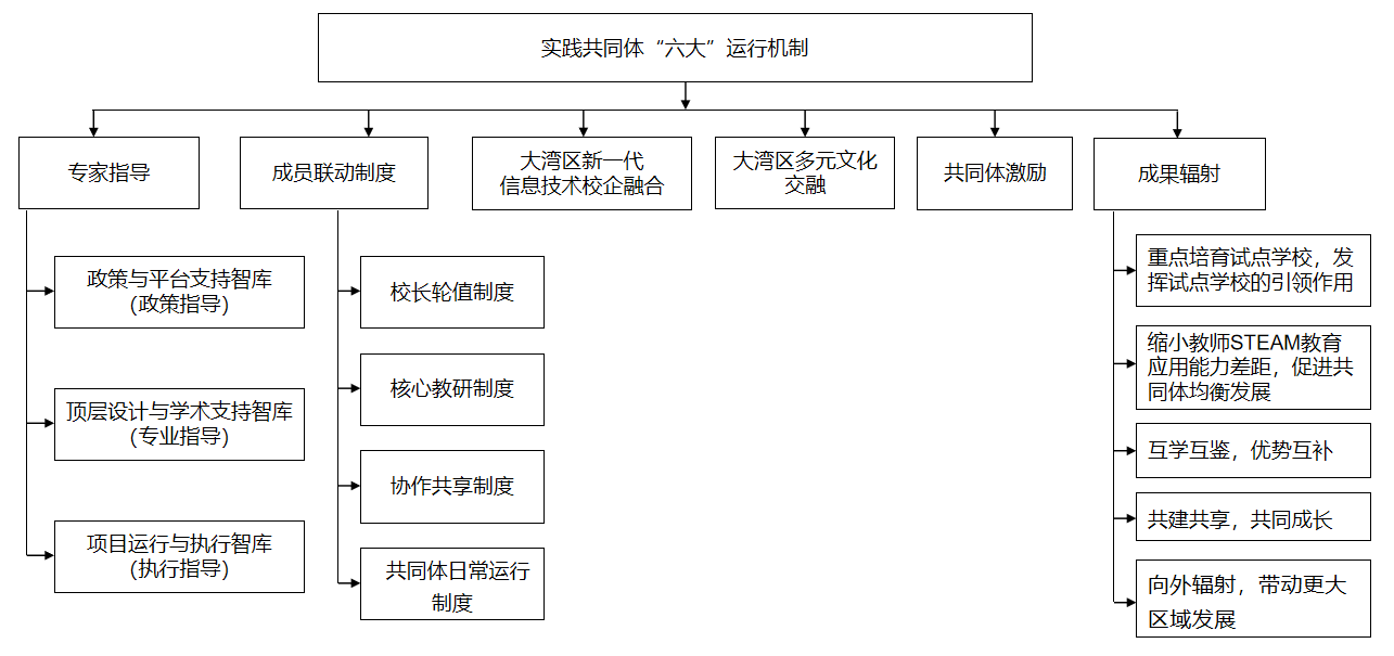 由广东省深圳市龙岗区麓城外国语小学牵头,联合粤港澳大湾区及中西部地区的41个成员单位共同研究的《基于大湾区的跨学科学习(STEAM教育)实践共同体》项目,围绕“STEAM教育赋能学生成长”的初衷,共同开展了大湾区STEAM教育应用模式的研究与实践。通过“四跨四共”课程混合教学模式,形成了典型案例与应用指南,建立了网络共享平台学习社区,构建了六项运行机制,培养了STEAM教育应用骨干教师队伍。