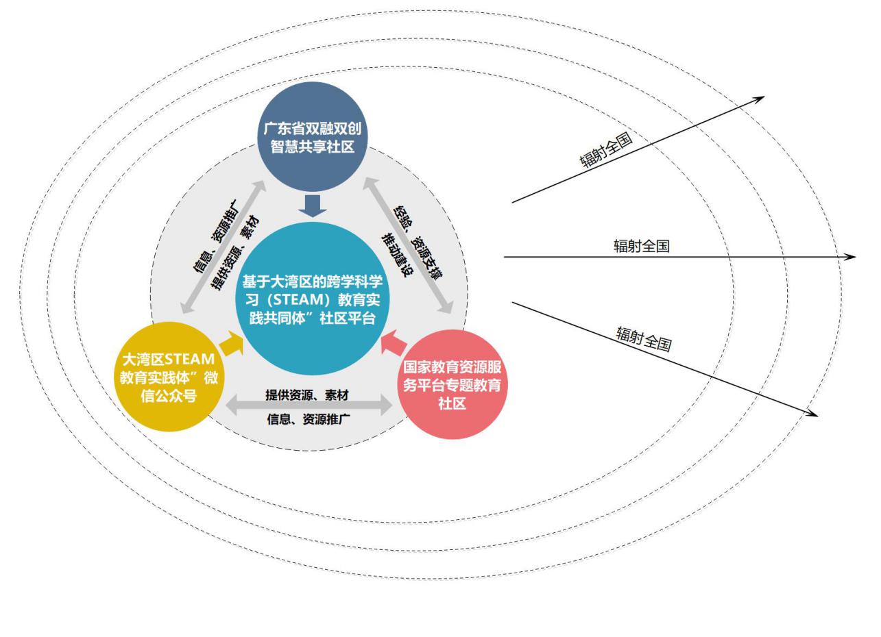 本共同体社区平台包括国家教育资源服务平台专题教育社区、广东省双融双创智慧共享社区和大湾区STEAM教育实践共同体微信公众号。这三个平台的相应社区推进本共同体交流,资源共建共享和辐射推广应用,为本共同体的发展和辐射发挥了重要的作用。