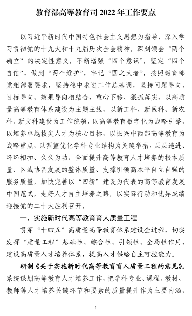 日前,教育部高等教育司印发《教育部高等教育司2022年工作要点》,提出全面推进高等教育教学数字化,具体任务包括:加快完善高等教育教学数字化体系、提升数字化应用能力、提升数字化治理能力、提升数字化国际影响力等。