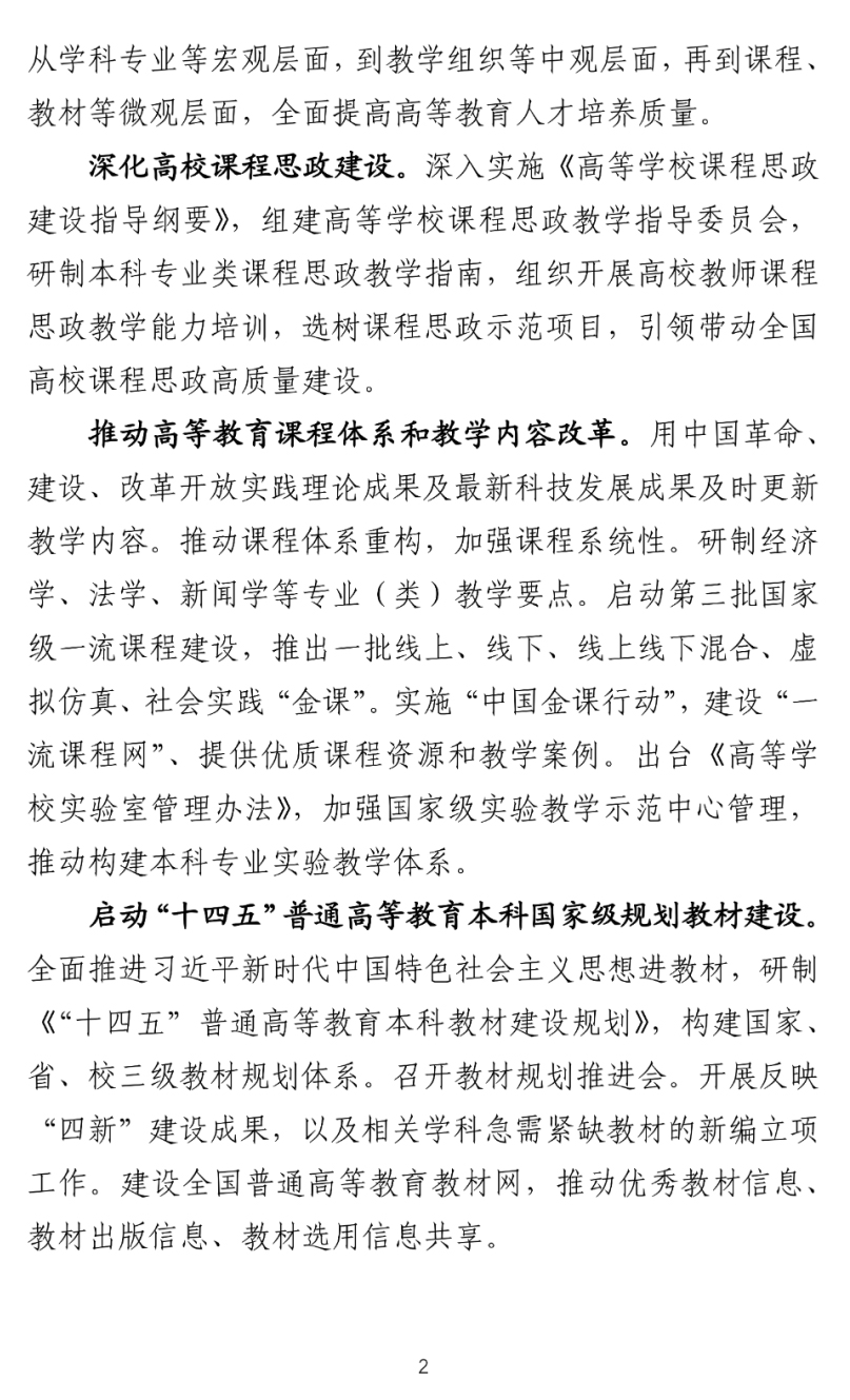 推动高等教育课程体系和教学内容改革。