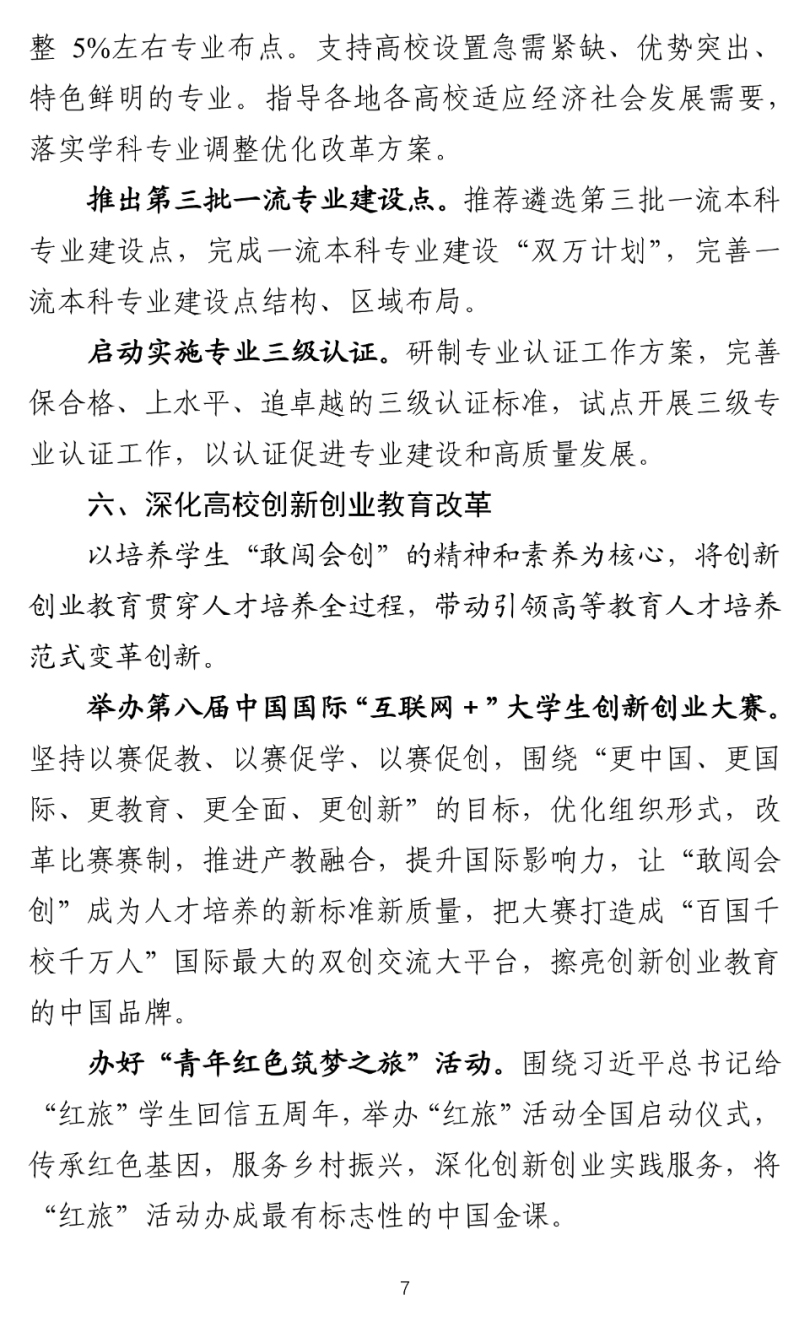 启动第三批国家级一流课程建设,推出一批线上、线下、线上线下混合、虚拟仿真、社会实践“金课”。实施“中国金课行动”,建设“一流课程网”、提供优质课程资源和教学案例。