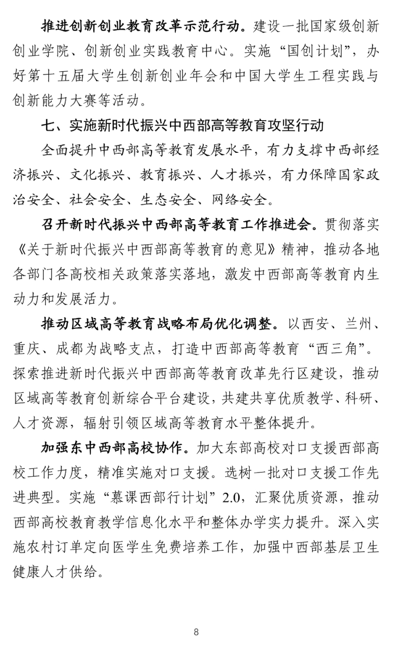 加强东中西部高校协作。