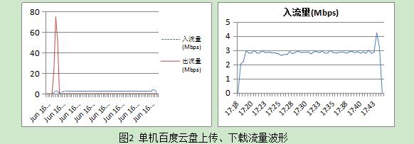 校园网中,入流量占比第二位的是用于文件下载的HTTP Download Manager 协议,比较典型的应用是百度云盘。图2为百度云盘使用HTTP Download Manager先上传再下载同一文件测试的流量波形,其流量特征为下载开始时流量迅速攀升到峰值并随后保持稳定的下载速率直到文件下载结束。