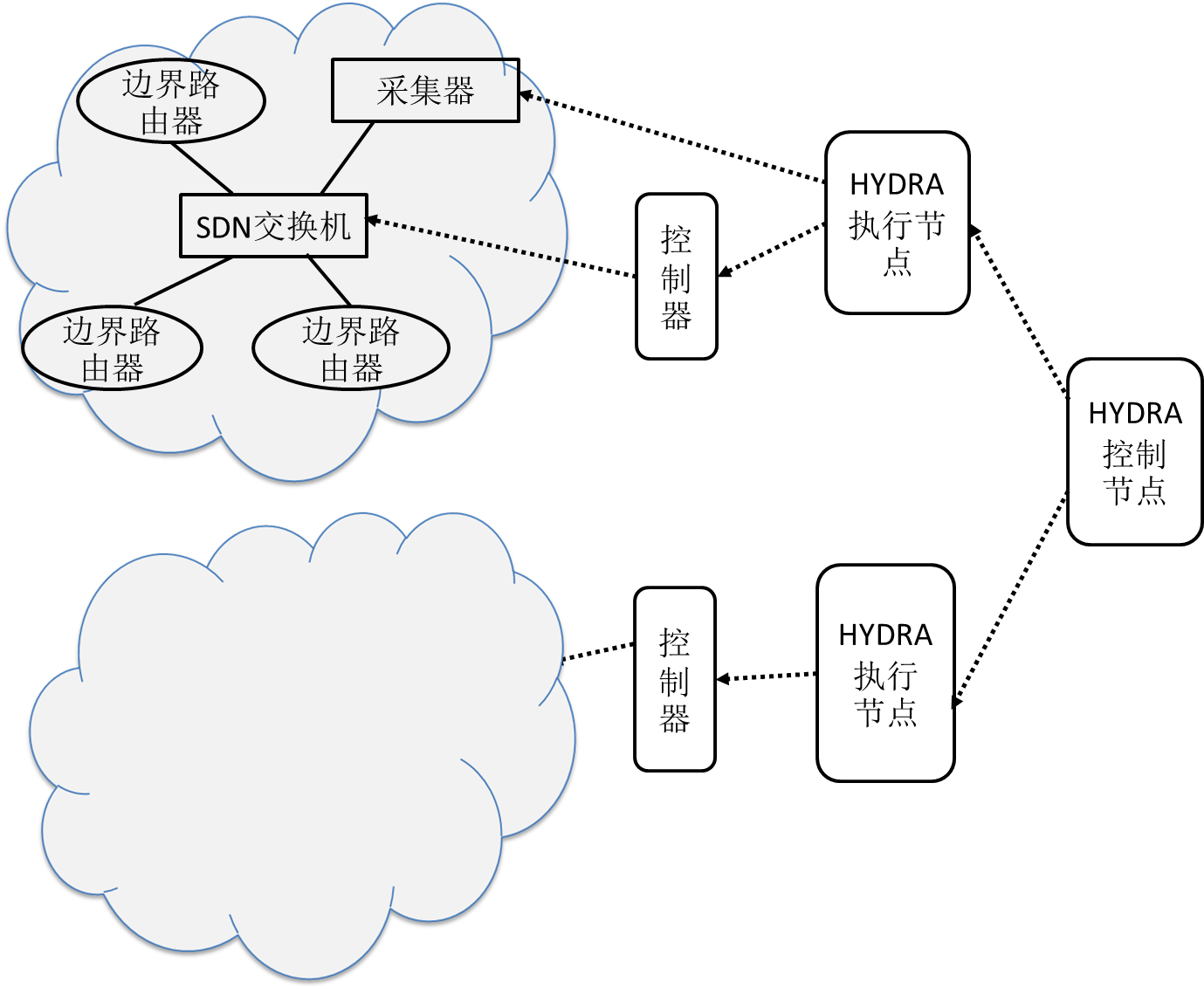 在此拓扑结构下,HYDRA系统一方面可以根据实时网络状态对阻断策略进行调整,另一方面,也使得HYDRA系统具备了分布式部署,以及节点间协同响应的能力。