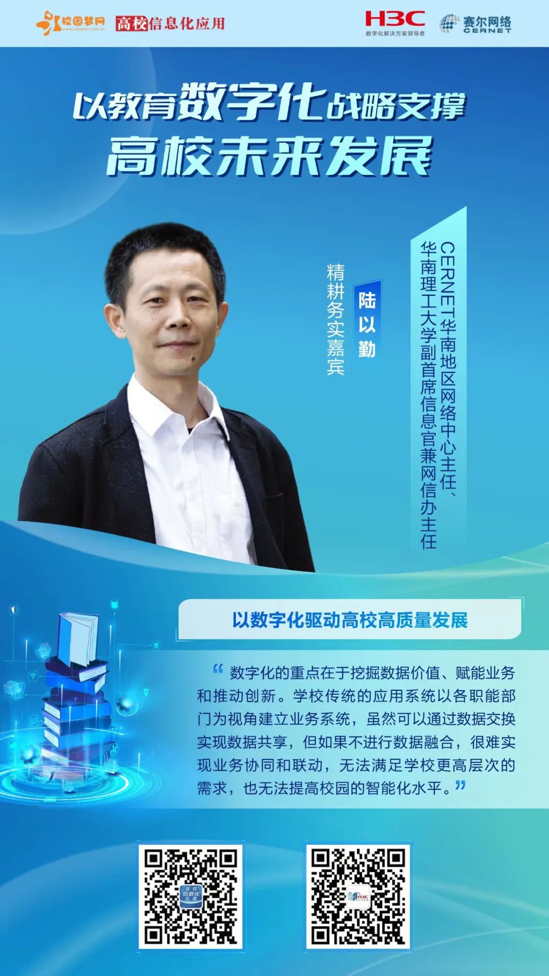 《高校信息化应用》与新华三集团合作推出“以教育数字化战略支撑高校未来发展”专栏,邀请国内著名高校的教育信息化专家以及优秀企业代表,分享数字化转型的实践与经验,洞悉教育智能化大变革。栏目旨在深化以数字技术赋能教育场景的务实实践,并致力于精耕教育数字化发展,为教育行业注入全方位的转型智慧和全新的数字活力。