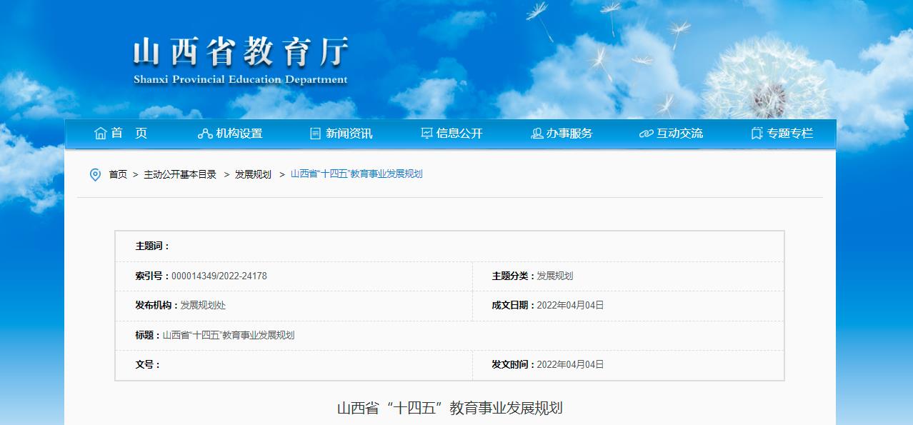 文件原文>>山西省“十四五”教育事业发展规划