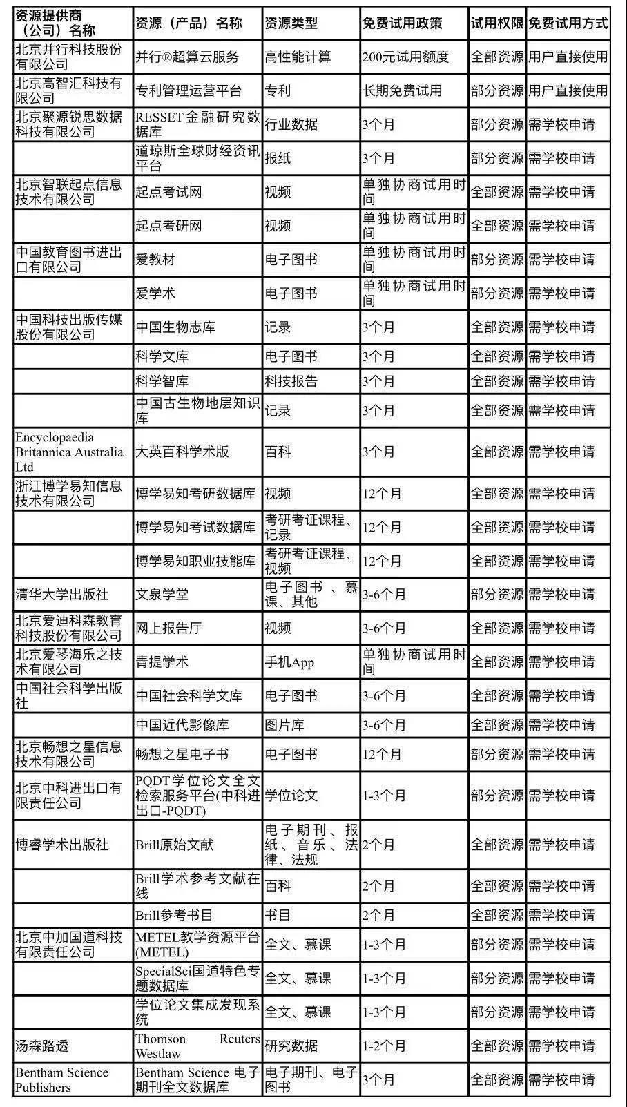 这些资源产品横跨教育学、理学、经济学、法学、教育学、历史学、医学、军事学、管理学、艺术学等各个学科领域,为不同学科背景的高校师生打开了一道道“免费试用之门”,共享各类优质的资源产品。