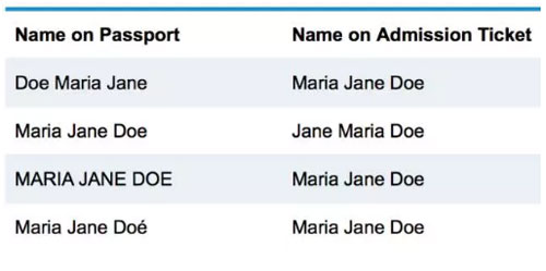 提供如下名称变体被接受的示例,CFA准考证与护照姓名对应规则: