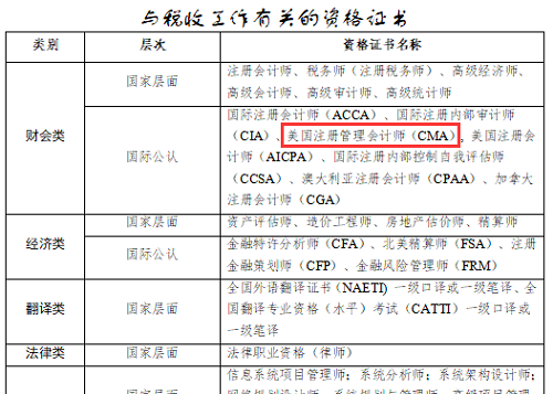一、国家税务总局发布全国税收领军人才选拔标准,CMA位列其中!