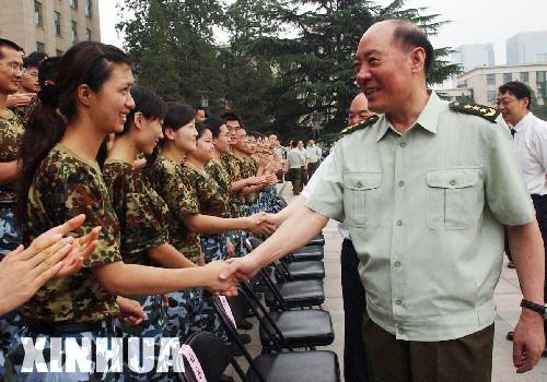 2006年7月8日,中国人民解放军总政治部主任李继耐上将接见准备出征的清华大学国防毕业生。新华社记者王呈选摄。