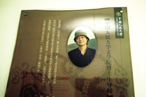 挂在人大人文楼一楼的余虹教授简介。记者 周民/摄