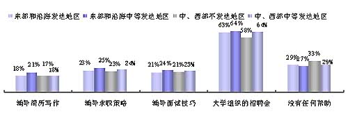 全国无论学校类型、就业地区或城市类型,有20%到30%的2008届大学毕业生没有接受任何求职服务。