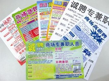 面对街头散发的各种各样的招聘广告,应聘者要慎重甄别